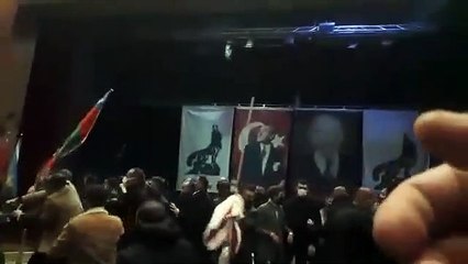 Alparslan Türkeş’in 104’üncü doğum günü etkinliğinde kavga çıktı. Toplantıyı basan 50 kadar kişi ortalığı savaş alanına çevirdi. Türkeş'in oğlu Ahmet Kutalmış Türkeş, "Vakıf genel sekreterine kızdım. ‘Gelenlere meydan dayağı çekemeyeceksen bir daha böyle toplantı yapma’ dedim” ifadelerini kullandı. Ankara'da Alparslan Türkeş Vakfı'nın Alparslan Türkeş’in 104’üncü doğum günü sebebiyle düzenlediği etkinlik fena karıştı. MHP İl Başkanı Turgay Baştuğ'un etkinliği eleştirmesinin ardından Ülkü Ocakları üyesi olduğu iddia edilen 50'ye yakın kişi, kapıda çevik kuvvet polislerinin beklemesine rağmen salona girdi. Bu kişiler, Alparslan Türkeş'e Kuran tilavetinden sonra dua edildiği esnada sahnedeki bayrakları alıp protokole saldırdı. Tekme, yumduk ve bayrak sopalarının kullanıldığı kavganın ardından karşılıklı suçlamalar birbirini izledi. Babamızın adına vakfı tabii ki biz kuracağız Alparslan Türkeş'in oğlu Ahmet Kutalmış Türkeş, saldırıyı eleştirdi. MHP ve polisi suçlayan Kutalmış Türkeş, “Polis koruyor, kolluyor, gözetliyor. Biri bile kimseyi gözaltına almıyor. Hükümetin, Emniyet'in, İçişleri Bakanı'nın koruyup kollaması ile gözetimi altında yapılan bir saldırı olduğu çok net” iddiasında bulundu. Kutalmış Türkeş, “Türkeş, MHP'nin sahibi ve kurucusu. Bizim babamız. Adını taşıyan vakfı tabi ki biz kuracağız. Adını taşıyan vakıf doğum günü ve ölüm yıldönümünde onu anmayacak da ne zaman anacak? Anmasını içine sindiremiyorsa demek ki Alparslan Türkeş'e düşmanlar. Başka açıklaması olamaz” dedi. 'Meydan dayağı çekemeyeceksen bir daha toplantı yapma’ dedim “İnanın, böyle bir şey beklemiyordum. İyi ki başka türlü olmamış. Silah çeken olurdu. Onlara da silah ve bıçak çeken olabilirdi. Hatta vakıf genel sekreterine kızdım. ‘Gelenlere meydan dayağı çekemeyeceksen bir daha böyle toplantı yapma’ dedim” diyen Kutalmış Türkeş, devamında yaşananları şöyle anlattı: “Olaydan sonra 4-5 polis içeriye giriyor. Sanki polis gözetiminde girmiş, polis gözetiminde çıkmışlar. Kürsü devirip insanlara saldıranları polis izler mi? Birkaçını gözaltına almaz mı? ‘Bir dakika’ deyip dilekçe mi yazılması gerekir? Yol verildiği kamera kaydıyla ortada. Ben babamın kabrine girerken önüme geçtiler. ‘Giremezsin’ diyorlar. Suç duyurusunda bulundum. Savcı ‘Soruşturmaya gerek yoktur’ dedi. Türkeş'i anma toplantısını basmak ne demek yani? Türkeş'in kurduğu teşkilattaki adamlar Türkeş'i anma toplantısını basıyor. Orayı bastığını zannedenler Türkeş'le ömründe konuşmamıştır. Türkeş'le konuşmamış adam bize Türkeşçilik oynuyor.”